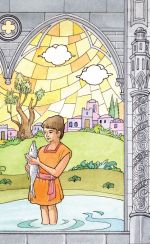 „Rafael dal oběma mladým lidem cenné rady: v den svatby se měli modlit a spálit srdce a játra ryby… Démon, který vždycky způsoboval smrt Sářiných snoubenců, se dal skutečně na rychlý útěk, a tak se Tobiáš po svatbě vrátil se svou ženou Sárou domů k otci. Když už byli doma, doporučil Rafael Tobiášovi, aby použil žluč ze zabité ryby k léčbě Tobitovy slepoty. Stařičkému otci se skutečně zrak vrátil. Jenom si představte tu radost! Rafael nakonec prozradil, že je anděl, kterého vyslal Hospodin, aby všichni věděli, že Bůh nikdy neopouští své věrné a naslouchá každé jejich modlitbě. Potom se jim ztratil z očí.“
