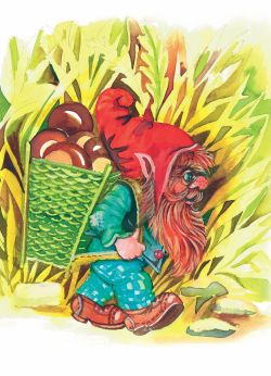 Šedivý skřítek po dobu nakládání seděl v trávě jako pecka, ale přece jen už se tolik nemračil. Oči mu jezdily od košíku ke košíku, než mu konečně Drnovec řekl: