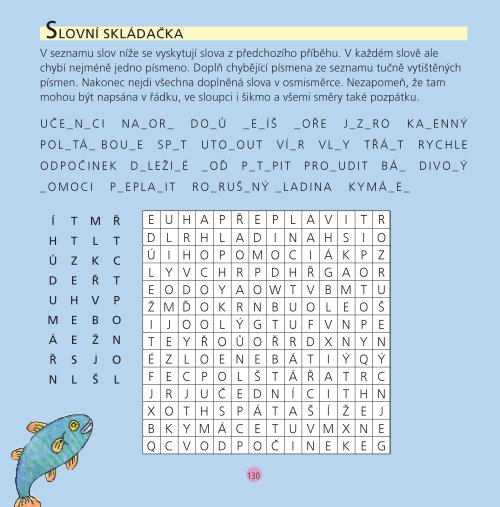 Za každým vyprávěním následuje dvoustrana nejrozmanitějších hlavolamů, od křížovek a přesmyček po doplňovačky či skládačky, které nenásilnou formou vedou děti k práci s přečteným textem.